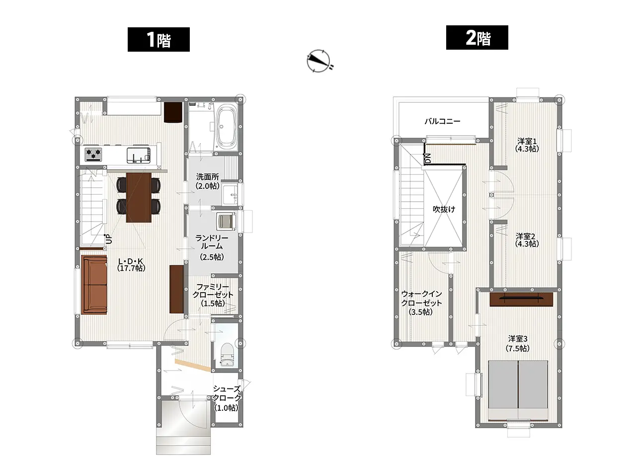 行き来の多い水回りの使い勝手をよくした回遊動線を採用。 家事効率のよい間取りになりました。